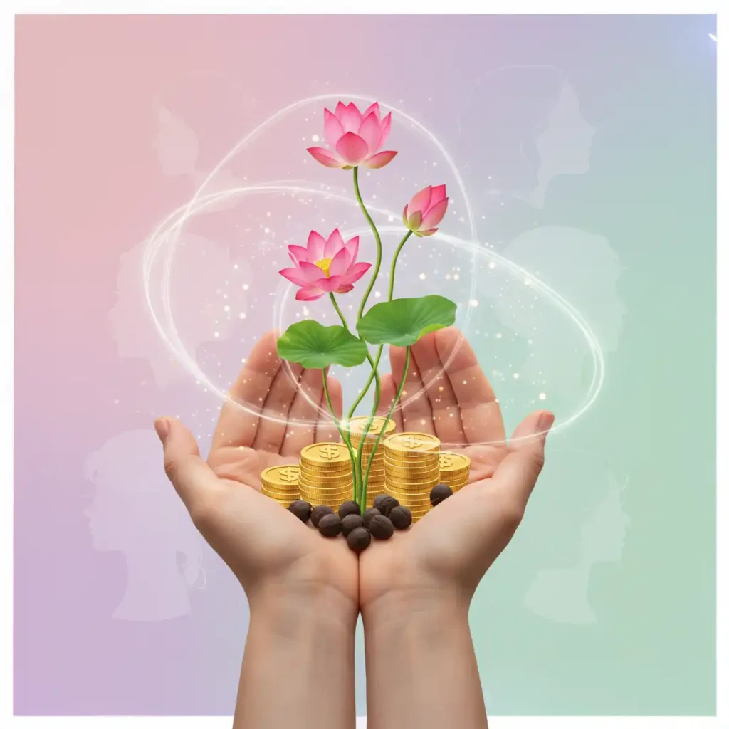 [SUGERENCIA DE IMAGEN para introducción: SUGERENCIA DE IMAGEN: Ilustración de manos sosteniendo semillas que germinan en monedas y flores, con un fondo suave de siluetas femeninas. ALT TEXT SUGERIDO: Manos cultivando éxito y dinero, simbolizando el crecimiento con Angelcup.]