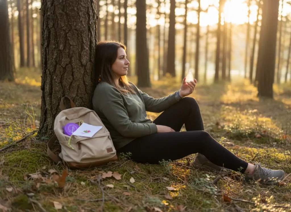 [SUGERENCIA DE IMAGEN: SUGERENCIA DE IMAGEN: **Lifestyle**. Una mujer latina (25-30 años) con una sonrisa genuina y relajada, descansando después de una caminata. La luz es brillante y natural, y el encuadre es un plano americano que muestra su cuerpo en reposo y sostiene la copa como si pensara: gracias as tí puedo lograr lo que me proponga. ALT TEXT SUGERIDO: Mujer activa y libre disfrutando de una caminata confiada con la comodidad de su Angelcup]