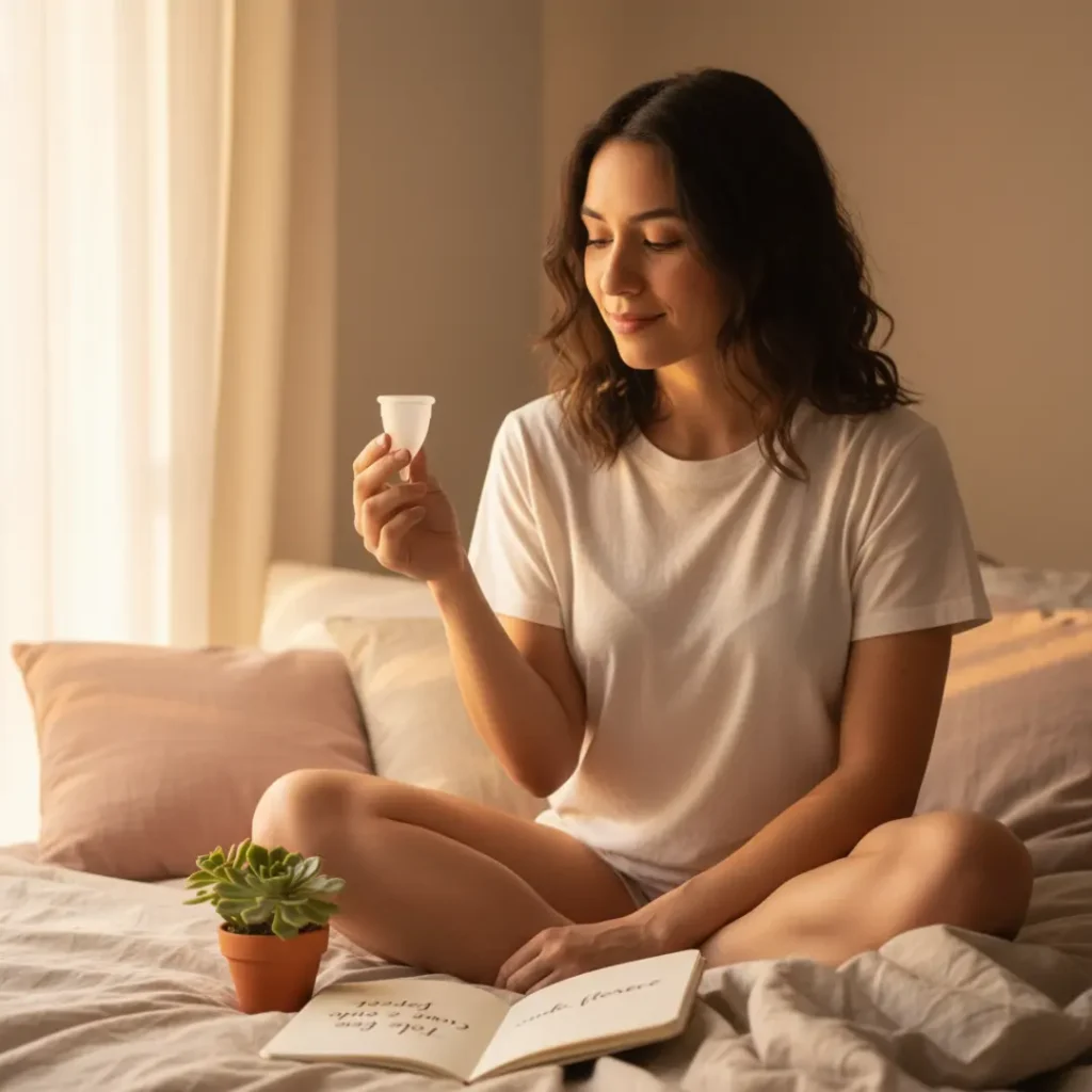 [SUGERENCIA DE IMAGEN para introducción: SUGERENCIA DE IMAGEN: **Lifestyle**. Una mujer latina de 30-35 años, con piel real, sentada tranquilamente en su cama junto a una ventana con luz de la mañana. Está leyendo un libro con una mirada serena y contemplativa, una mano apoyada suavemente sobre su vientre. El encuadre es un plano medio, transmitiendo paz y conexión consigo misma. ALT TEXT SUGERIDO: Mujer latina serena conectando con su cuerpo y ciclo menstrual usando Angelcup]