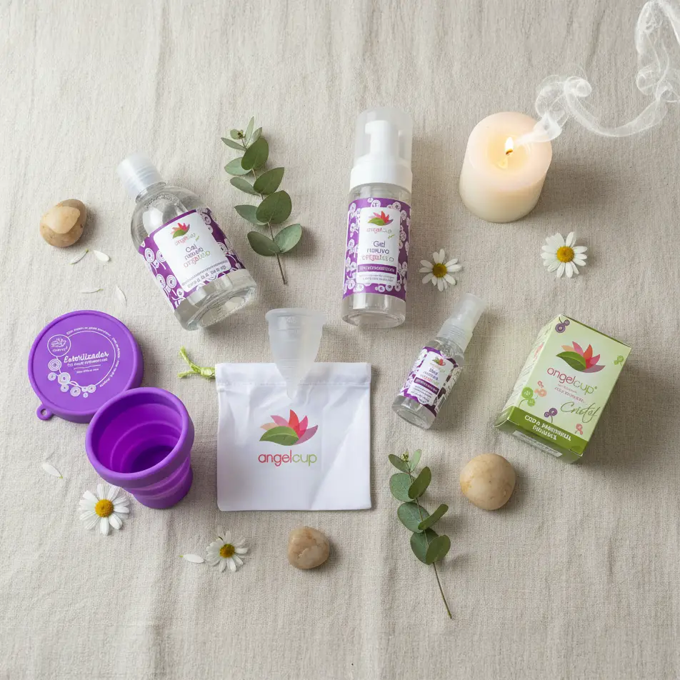[SUGERENCIA DE IMAGEN: SUGERENCIA DE IMAGEN: **Producto**. Un set minimalista con la Copa Menstrual Angelcup, el [Gel Neutro Angelcup](https://angelcupmexico.com/tienda/jabon-en-gel-neutro/) y el [Vaso Esterilizador Angelcup](https://angelcupmexico.com/tienda/vaso-esterilizador-de-copa-menstrual/). Los productos están dispuestos sobre una toalla de lino limpia de color gris claro, con un pequeño ramo de lavanda seca a un lado. La luz es suave y difusa, creando una atmósfera de cuidado y limpieza. ALT TEXT SUGERIDO: Kit esencial Angelcup: copa, gel neutro y vaso esterilizador para una higiene menstrual completa]