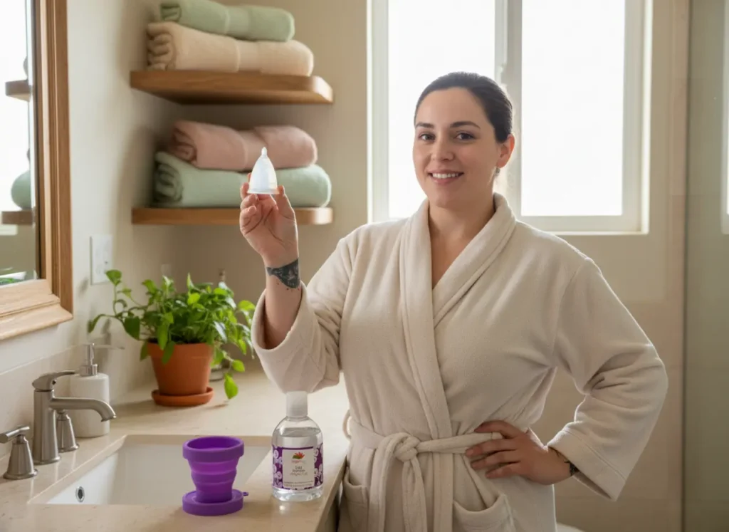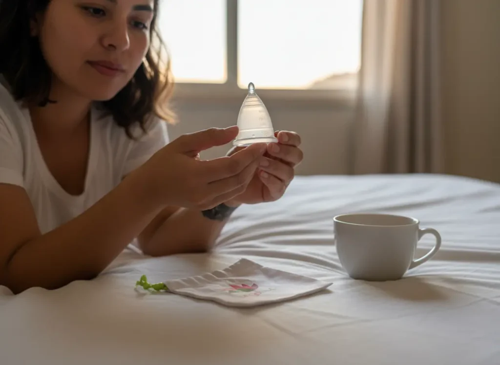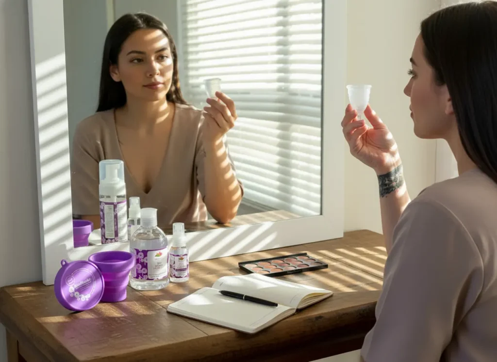 [SUGERENCIA DE IMAGEN: SUGERENCIA DE IMAGEN: Lifestyle. Una mujer latina (30-40 años) con una expresión de total confianza y serenidad, en un baño minimalista y luminoso. Sostiene con delicadeza su Copa Menstrual Angelcup junto a un certificado impreso o una etiqueta de producto que muestre los sellos de calidad. La luz de ventana suave ilumina su rostro, y el encuadre es un plano medio. ALT TEXT SUGERIDO: Mujer serena mostrando confianza en la Angelcup de silicona médica certificada FDA.]